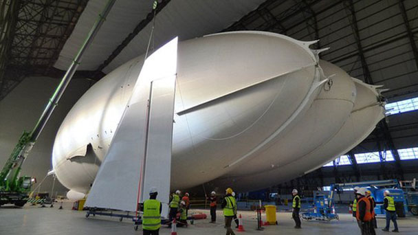 這條長達(dá)93米的巨型飛船將用于商業(yè)和休閑目的的飛行,正在英國卡靈頓的機(jī)庫中進(jìn)行改造。