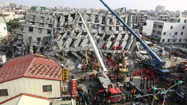2016年2月6日,中國臺灣,高雄美濃6日凌晨3時57分27秒發生里氏6.4級地震,臺南市震度5級,歸仁、關廟、新市等地接連發生多次里氏3至4級地震,多處停電。