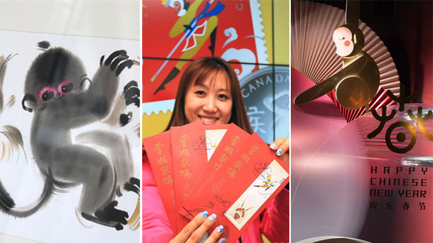 國內,迎接猴年,各種猴元素的傳統和創意小商品紛紛上市。國外也有“猴”元素的點綴:如加拿大等多國推出猴年剪紙郵票、美國連續多年推出生肖吉利錢、法國猴元素巧克力……