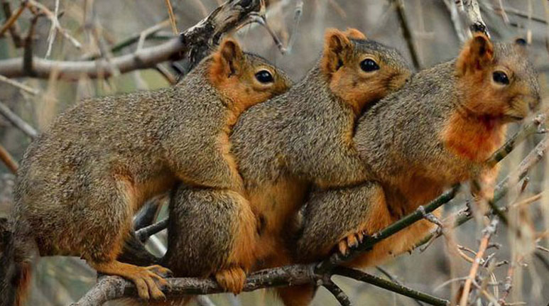 英國52歲攝影師托馬斯在美國蒙大拿州度假時,拍攝到3只可愛松鼠抱在一起取暖的照片,隨即成為網上熱話。