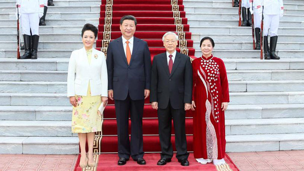 晚宴開(kāi)始后,阮富仲和習(xí)近平分別致辭,強(qiáng)調(diào)中越關(guān)系不斷向前發(fā)展為兩國(guó)人民帶來(lái)實(shí)實(shí)在在的好處,雙方要共同推動(dòng)中越全面戰(zhàn)略合作伙伴關(guān)系長(zhǎng)期健康穩(wěn)定發(fā)展。習(xí)近平在致辭中指出,我們深切感受到越南人民對(duì)中國(guó)人民的友好情誼,深切感受到中越傳統(tǒng)友誼的深厚基礎(chǔ)。中方愿同越方一道,繼續(xù)遵循長(zhǎng)期穩(wěn)定、面向未來(lái)、睦鄰友好、全面合作的方針和好鄰居、好朋友、好同志、好伙伴的精神,推動(dòng)中越全面戰(zhàn)略合作伙伴關(guān)系不斷向前發(fā)展。