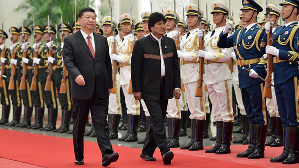 6月19日,國家主席習近平在北京人民大會堂同玻利維亞總統莫拉萊斯舉行會談。會談后,兩國元首共同簽署了《中華人民共和國和多民族玻利維亞國關于建立戰略伙伴關系的聯合聲明》,并共同見證了共建“一帶一路”等雙邊合作文件的簽署。