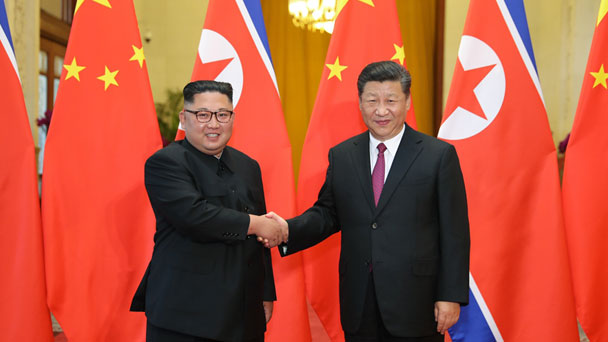 6月19日,中共中央總書記、國家主席習近平同當日抵京對中國進行訪問的朝鮮勞動黨委員長、國務委員會委員長金正恩舉行會談。