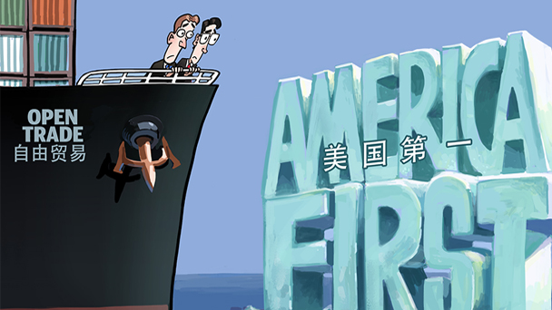 美國總統特朗普鼓吹“美國第一”的行為過于自私,實質是為了本國利益而損害全球自由貿易。