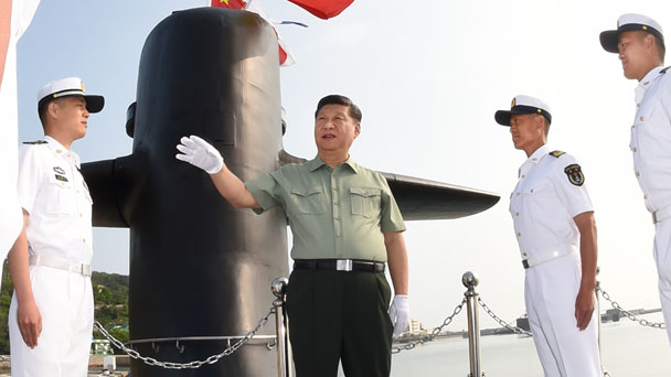 6月11日下午,中共中央總書記、國家主席、中央軍委主席習近平視察北部戰區海軍。離開潛艇部隊,習近平來到北部戰區海軍機關,親切接見北部戰區海軍副師職以上領導干部,同大家合影留念。