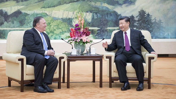 6月14日,國家主席習近平在北京人民大會堂會見美國國務卿蓬佩奧。