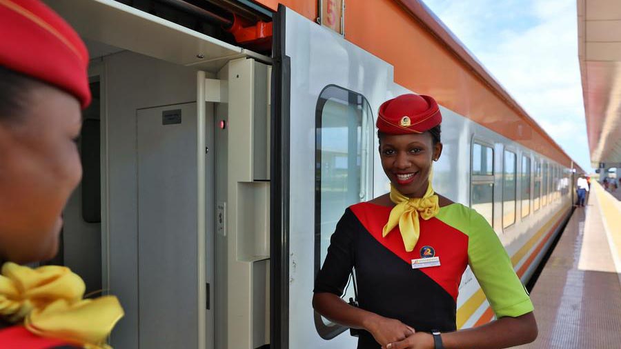 2017年5月31日,連接肯尼亞東部港口城市蒙巴薩與首都內羅畢的蒙內鐵路正式開通。新華社記者王騰 攝 6月1日,駕駛員駕駛列車駛出肯尼亞蒙內鐵路蒙巴薩站。新華社記者王騰 攝 6月2日,旅客在肯尼亞蒙內鐵路蒙巴薩站檢票登車。