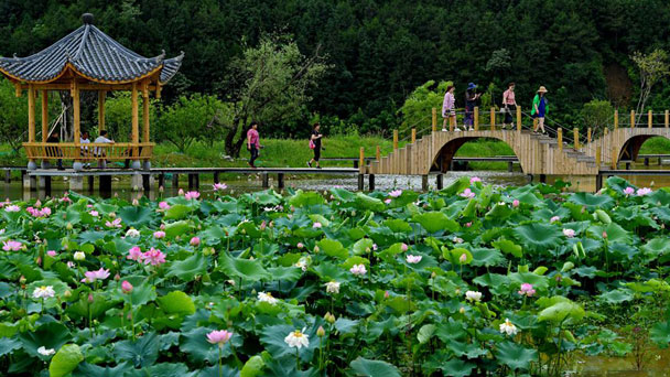 近年來,福建省武夷山市五夫鎮(zhèn)在鄉(xiāng)村振興中把發(fā)展特色種植業(yè)和旅游產(chǎn)業(yè)結(jié)合起來,大面積種植荷花,吸引眾多游客前來觀賞,有效帶動(dòng)鄉(xiāng)村經(jīng)濟(jì)的發(fā)展。
