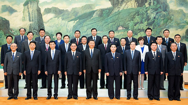 5月16日,中共中央總書記、國家主席習近平在北京會見由朝鮮勞動黨中央政治局委員、中央副委員長樸泰成率領的朝鮮勞動黨友好參觀團。