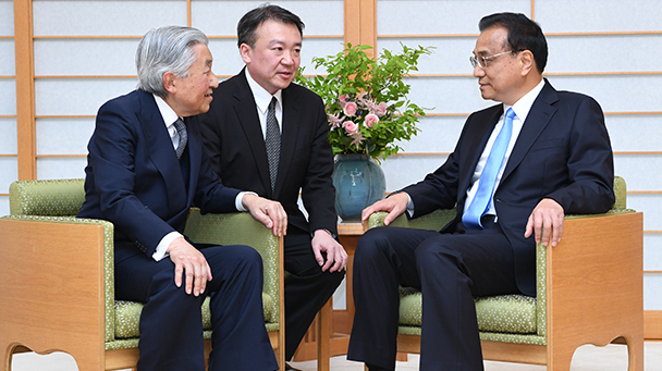 當地時間5月10日上午,國務院總理李克強在東京皇宮會見日本天皇明仁。