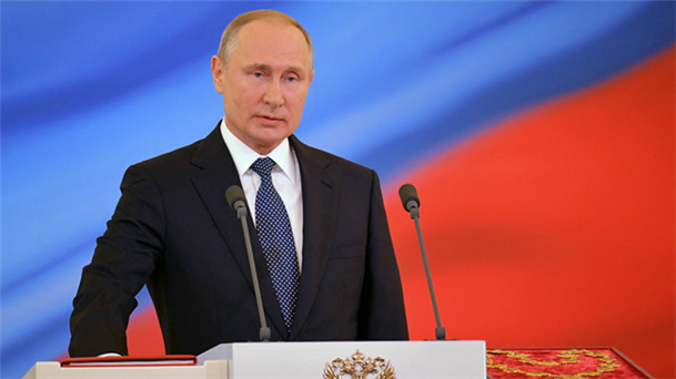 5月7日,俄羅斯總統普京在莫斯科克里姆林宮舉行的就職典禮上講話。當日,俄羅斯總統就職典禮在莫斯科克里姆林宮舉行。