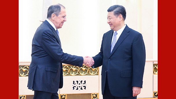4月23日,國家主席習近平在北京人民大會堂會見俄羅斯外長拉夫羅夫。
