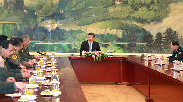 4月23日,國家主席習近平在北京人民大會堂集體會見上海合作組織成員國國防部長。