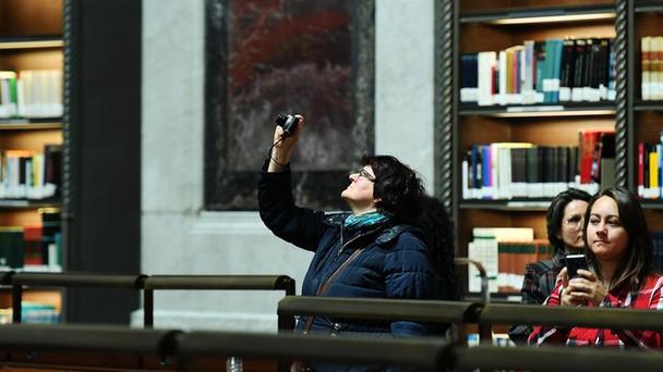 位于馬德里的西班牙國家圖書館15日迎來一年一度的公眾開放日。市民在工作人員的帶領下,參觀圖書館的閱覽、藏書、辦公、多媒體、古籍修復及歷史陳列等區域。