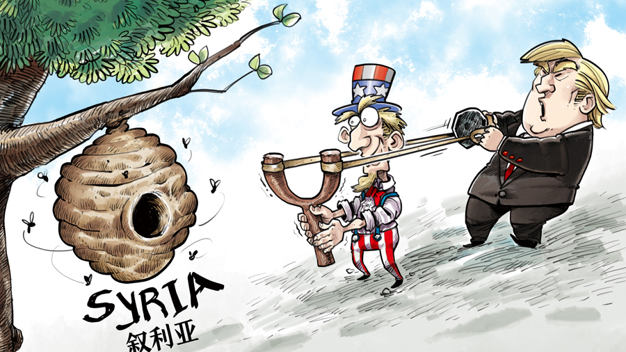 美國聯合英國、法國對敘利亞動武,無助于實現和平。