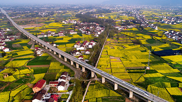 3月21日,一列動車正通過陜西省漢中市南鄭縣新集鎮(zhèn)油菜花海(無人機拍攝)。新華社記者 胡虎虎 攝 3月24日,河北省靈壽縣南營鄉(xiāng)車谷砣村黨支部書記陳春芳介紹他帶領(lǐng)村民開辦農(nóng)家樂脫貧的情況。