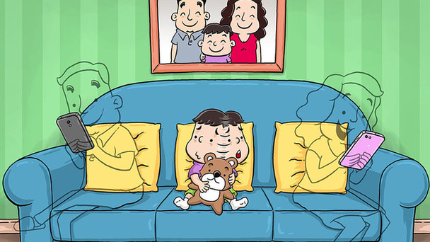 父母沉浸在手機社交網(wǎng)絡(luò)之中,在孩子面前變成了“隱形人”。