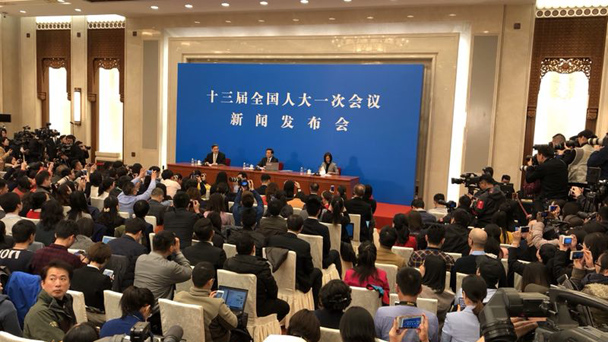 3月12日,十三屆全國人大一次會議新聞中心舉行記者會,邀請十二屆全國人大財經委副主任委員尹中卿、教科文衛委副主任委員吳恒、環資委副主任委員袁駟、內司委委員鄭功成,全國人大常委會預算工委副主任劉修文、常委會辦公廳秘書局巡視員傅文杰就“人大監督工作”相關問題回答中外記者提問。
