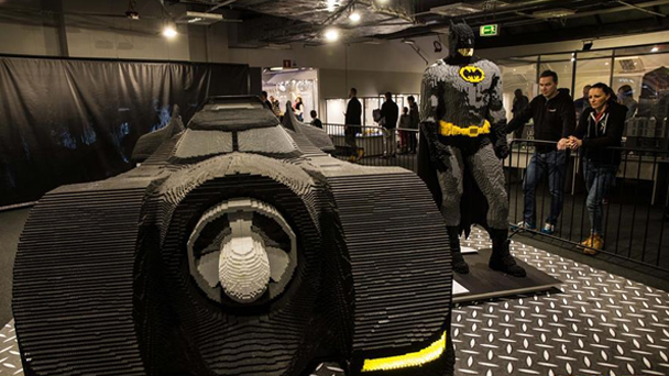 2月4日,在波蘭首都華沙的國家體育場舉辦的大型樂高積木展上,人們觀看用樂高積木搭成的模型。