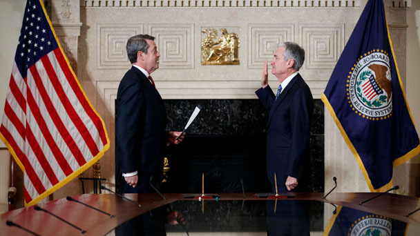 當地時間2月5日,杰羅姆·鮑威爾在華盛頓宣誓就任新一屆美國聯邦儲備委員會主席,接替前主席珍妮特·耶倫執掌美國央行。