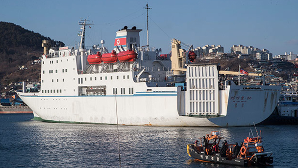 2月6日,朝鮮藝術團乘坐“萬景峰92”號輪船抵達韓國江原道東海市墨湖港。140余人組成的朝鮮藝術團于6日抵達韓國,將分別于8日和11日在江陵和首爾為平昌冬奧會舉行祝賀演出。
