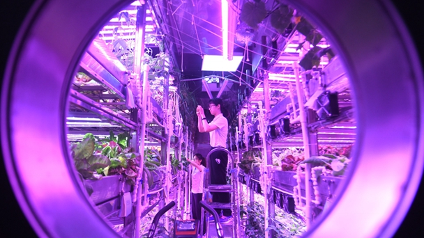 1月26日,志愿者在艙內工作。當日,“月宮365”實驗換班儀式在北京航空航天大學“月宮一號”實驗室舉行,4名大學生自去年7月9日換班入艙已在這個密閉空間連續駐留200天,打破了由俄羅斯科研人員創造的在生物再生生命保障系統中連續駐留180天的世界紀錄。