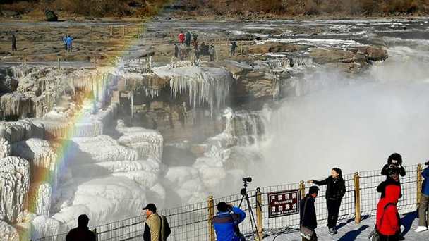 隨著氣溫持續(xù)下降,12月17日,位于晉陜大峽谷的黃河壺口瀑布形成獨特的“冰瀑玉壺”壯麗景觀。