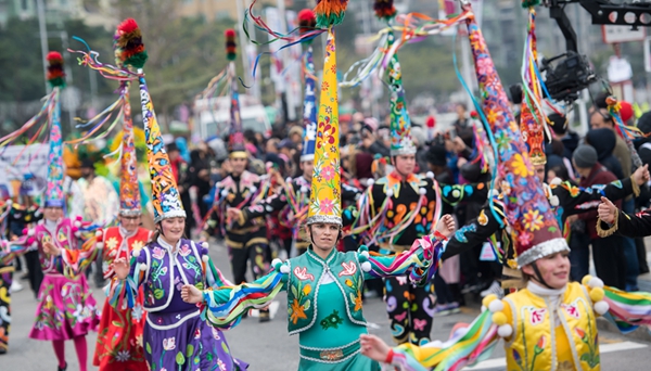 12月17日,巡游隊伍從澳門大三巴牌坊出發。當日,2017年澳門國際幻彩大巡游在澳門半島舉行,60多支來自世界多個國家和地區的藝術團體和澳門本地演藝巡游隊伍參與,揭開了澳門喜迎回歸祖國18周年活動的序幕。