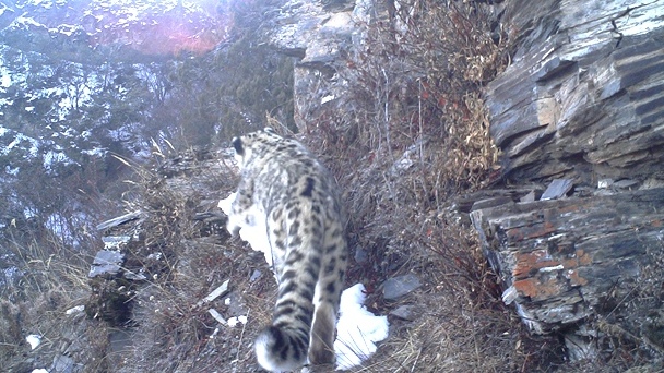此次監測區域分布在丁青縣當堆鄉境內,時間從2017年11月1日開始,在一個月監測期間,16名牧民監測隊員在100多平方公里的范圍布設了20臺紅外相機,共捕捉到了26次雪豹活動影像。