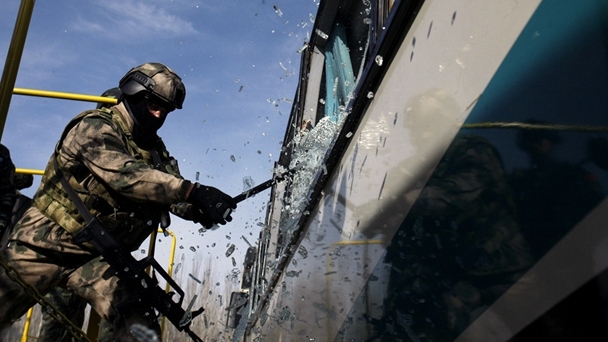 12月6日至7日,中俄“合作-2017”聯(lián)合反恐演訓(xùn)開展了樓房突擊、街區(qū)搜剿戰(zhàn)斗和公共汽車反劫持等訓(xùn)練課目。