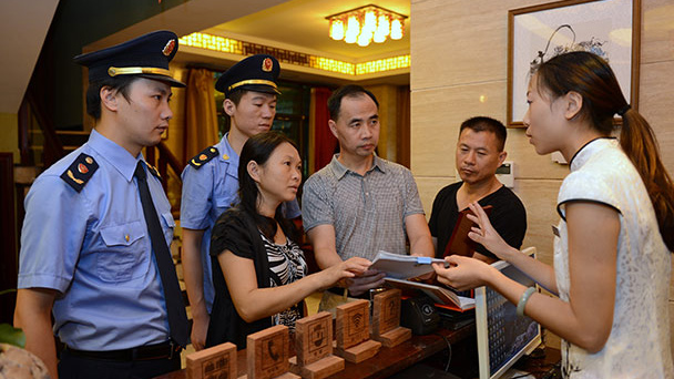 福建武夷山市紀(jì)委組織的檢查組人員在武夷山度假區(qū)一家私人會所進(jìn)行公款消費(fèi)檢查(2014年9月1日攝)。近日,新華社記者就落實(shí)習(xí)近平總書記重要指示精神,進(jìn)一步推進(jìn)作風(fēng)建設(shè),采訪了中央紀(jì)委有關(guān)負(fù)責(zé)同志。