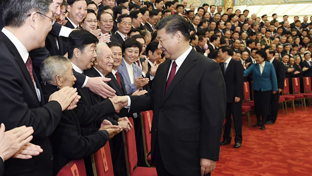 11月17日,全國精神文明建設表彰大會在北京人民大會堂舉行。會前,習近平、王滬寧等會見與會代表。會前,習近平、王滬寧等會見與會代表。這是習近平邀請黃旭華、黃大發代表坐在自己身邊合影。