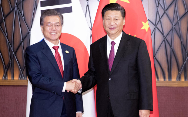 國家主席習近平11日在越南峴港會見韓國總統文在寅。