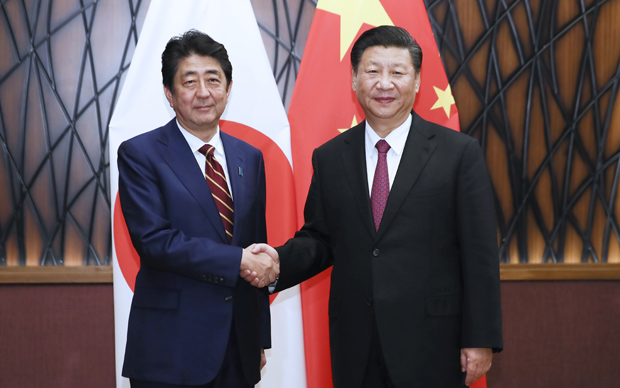 國家主席習近平11日在越南峴港會見日本首相安倍晉三。