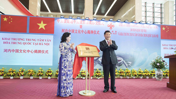 中共中央總書記、國家主席習近平12日在河內出席越中友誼宮落成移交儀式暨河內中國文化中心揭牌儀式。