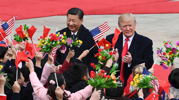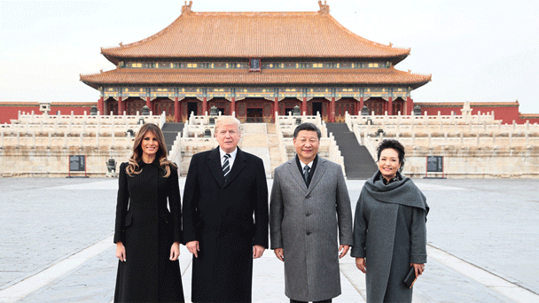 11月8日下午,國(guó)家主席習(xí)近平和夫人彭麗媛在北京故宮博物院迎接來華進(jìn)行國(guó)事訪問的美國(guó)總統(tǒng)特朗普和夫人梅拉尼婭。