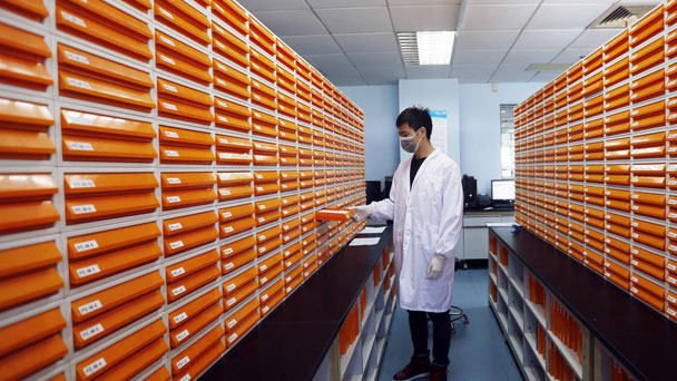 走進生物銀行,高高的橙色架子上有一個個類似保險柜的小抽屜,這里儲存了50萬份腫瘤組織,是銀行的第一批“庫存”。