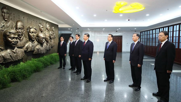 10月31日上午,黨的十九大閉幕僅一周,習近平和李克強、栗戰書、汪洋、王滬寧、趙樂際、韓正,從北京乘專機來到上海,到興業路76號集體瞻仰中共一大會址。