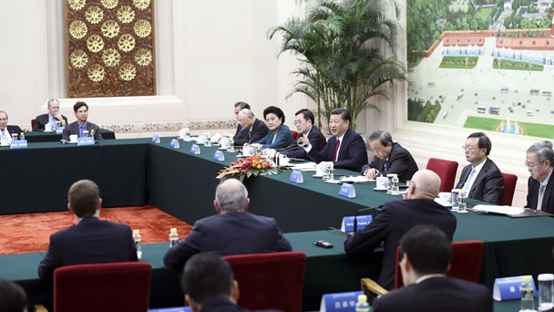 10月30日,國家主席習近平在北京人民大會堂會見清華大學經濟管理學院顧問委員會海外委員和中方企業家委員。新華社記者 鞠鵬 攝