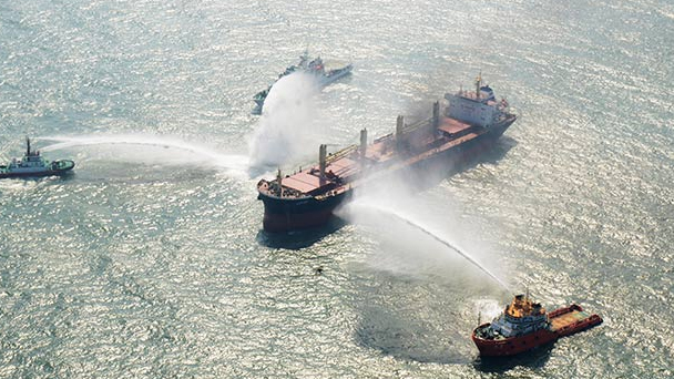 這是31日在廣東湛江海域舉行的中國-東盟國家海上聯合搜救實船演練的一幕。據了解,本次演練有來自中國、泰國、菲律賓、柬埔寨、緬甸、老撾和文萊等7個國家相關機構的代表和海上搜救力量參演,參演船艇達20艘,飛機3架,參演人員約1000人。