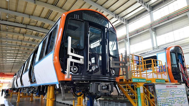 這是在中車長客客車制造中心裝配一車間拍攝的波士頓地鐵列車(10月31日攝)。新華社記者 張楠 攝 10月31日,在中車長客客車制造中心裝配一車間,工人調整波士頓地鐵列車上配備的折疊輪椅。