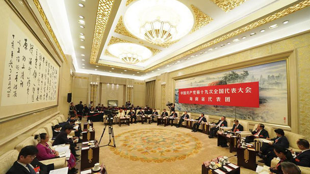 10月18日,十九大部分代表團討論向中外記者開放。