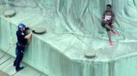 7月4日是美國獨立日,全國都洋溢在一片歡慶的氣氛中。然而一名女子卻爬上了自由女神像的基座,以此抗議特朗普政府的移民政策。