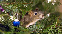 一只萌萌的小松鼠約一個月前受傷躺在路邊,被一對夫婦救起,傷好以后,這只小松鼠就在這對夫婦家中的圣誕樹上安了家。