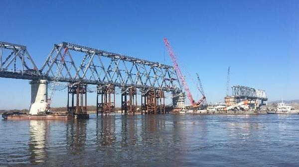 10月13日上午,中俄同江—下列寧斯闊耶鐵路橋重要組成部分——黑龍江特大橋中方最后一吊鋼梁安裝到位,標志著同江中俄鐵路大橋中方段主體工程全部完成。