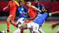 10月13日,國際足球友誼賽,中國隊坐鎮蘇州奧體中心迎戰印度隊。由于兩國人口加起來接近30億,這場比賽也被球迷戲稱為“地球德比”。比賽最終以0比0收場。