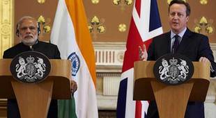 莫迪12日對英國展開訪問。英國首相卡梅倫與莫迪舉行聯合記者會,宣布兩國企業將簽署總值90億英鎊的貿易合同。
