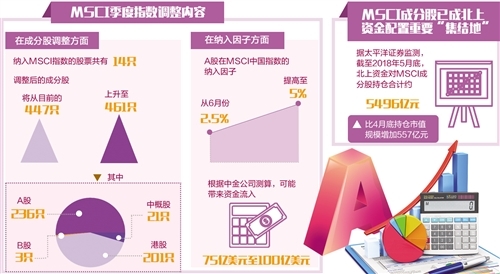 國(guó)際知名指數(shù)編制公司摩根士丹利資本國(guó)際指數(shù)(英文簡(jiǎn)稱MSCI)公布了2018年8月份的季度指數(shù)審議結(jié)果,將落實(shí)A股納入MSCI新興市場(chǎng)等指數(shù)的第二步,把現(xiàn)有A股的納入因子從2.5%提高至5%