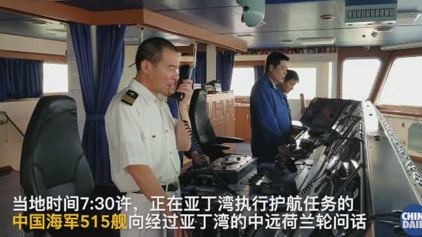 正在海上絲綢之路航行的貨輪中遠荷蘭輪于當地時間15日早晨在亞丁灣海盜區遇到了正在執行護航任務的中國海軍濱州艦(舷號515)。
