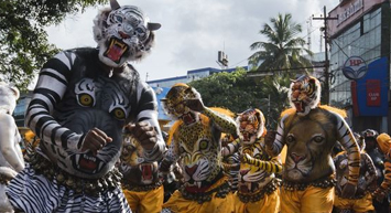 印度傳統虎舞的臺前幕后 表演者用顏料涂滿全身化身“猛虎”